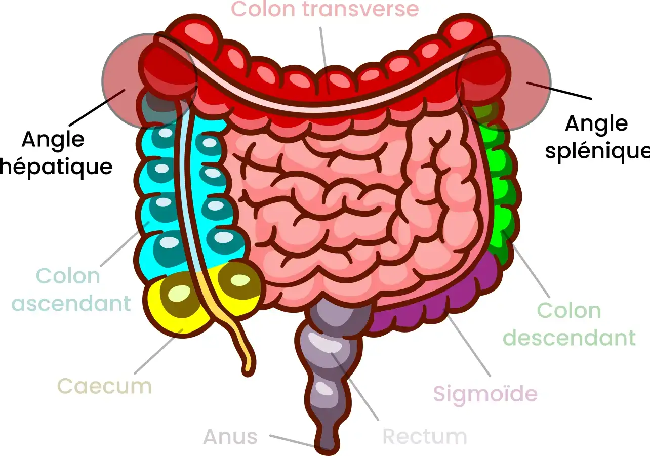 Illustration des angles hépatiques et splenique du côlon - Cabinet Jun Li - Bien-être traditionnel chinois